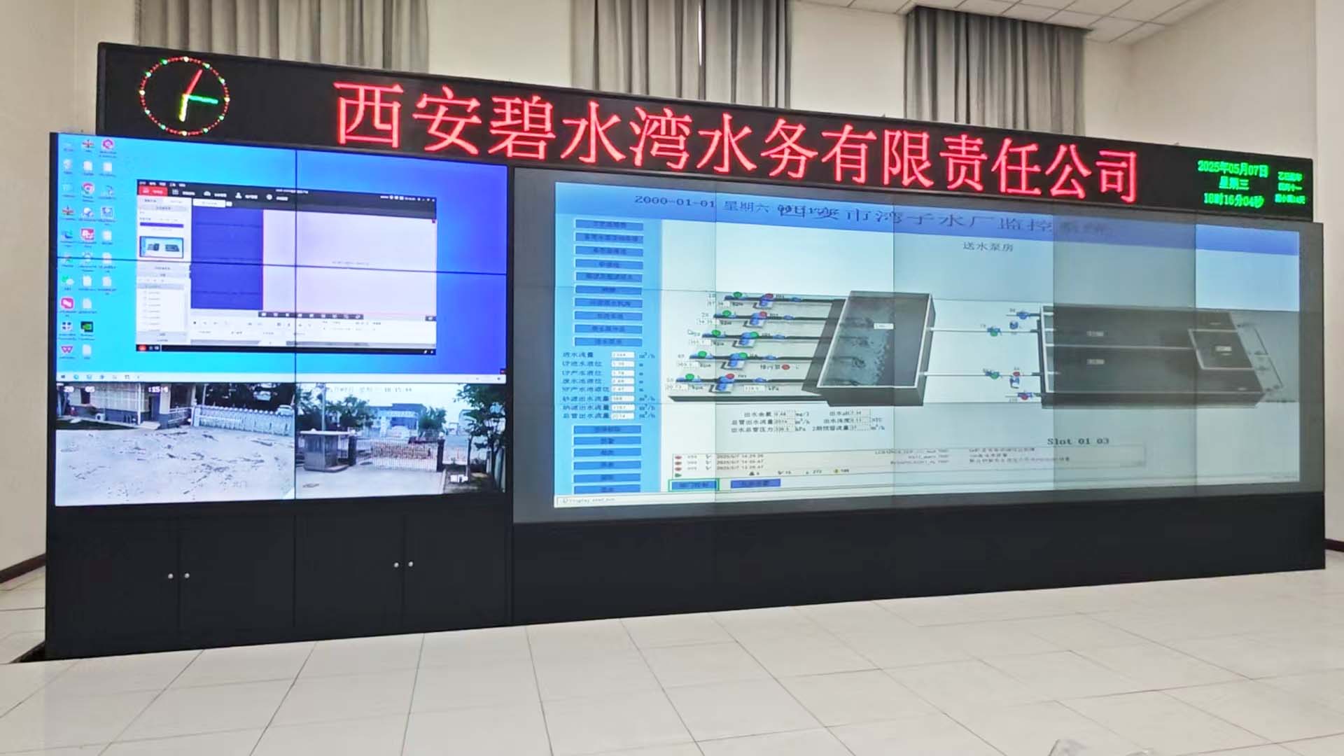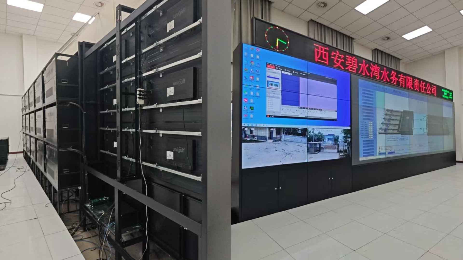 西安某供水企业在经费预算不足的情况下,在陕西鑫泉光电技术支持下,把原来用于监控供水系统---即将报废的DLP背投大屏系统,进行重新升级改造,拆除报废 了几台无法使用的背投显示器。重新购置了几台55寸的液晶拼接屏,并采用最新的解码矩阵和钢架结构,使其又焕发生机,继续承担监控供水系统大屏的任务。